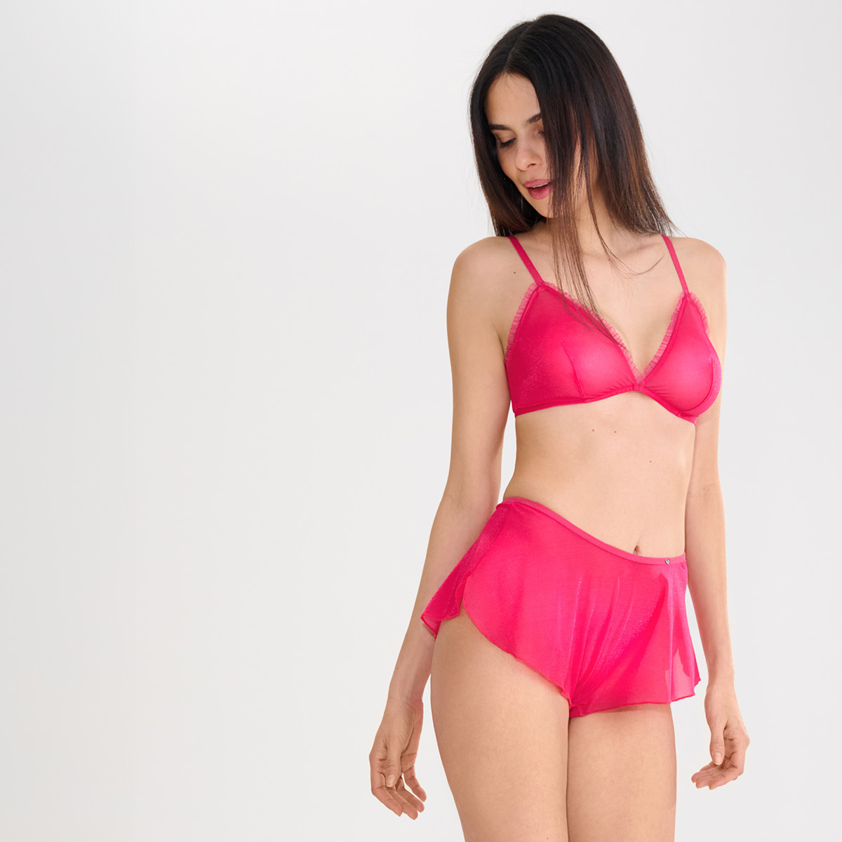 Černé prádlo bylo jedním z nejpůsobivějších momentů přehlídky — nadčasový symbol elegance, odvážné ženskosti a sebevědomé síly. Když si ho oblékneš, inspiruje tě a posílí tvou vnitřní sílu, díky čemuž zazáříš ještě odvážněji, nepřekonatelně a úplně ve své kůži.